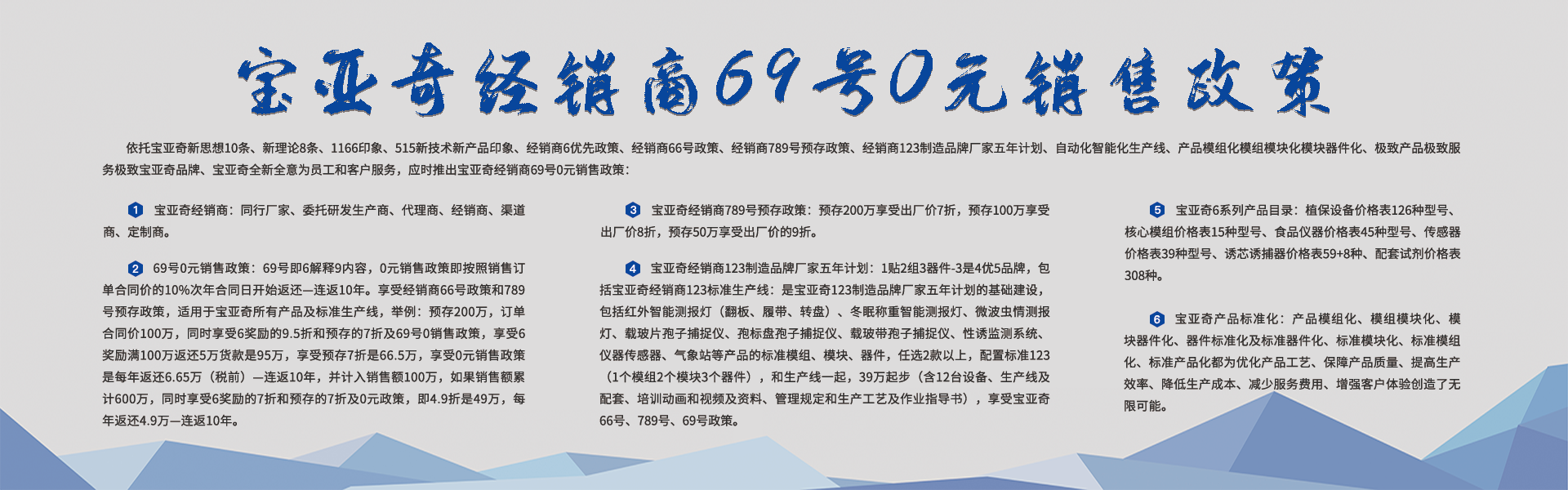 北京寶亞奇儀器制造有限公司位于北京市延慶區(qū)鴻川北路26號,是一家專注于農(nóng)林病蟲草測報設(shè)備、氣象傳感器、土壤食品快檢儀器、實驗室儀器等儀器研發(fā)和制造的新興科技公司。公司擁有完整的銷售和售后服務(wù)體系,能夠提供產(chǎn)品從設(shè)計、研發(fā)、制造到安裝、售后的一站式服務(wù)。我們的產(chǎn)品:蟲情測報燈、孢子捕捉儀、氣象監(jiān)測站、水肥一...